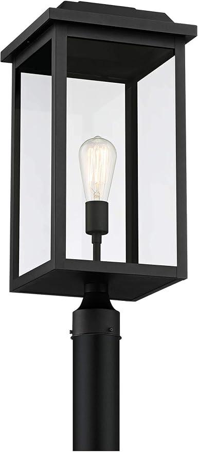 - 【High-Quality Outdoor Lighting】Textured black finish. Steel construction. Clear glass panels. Post light only. Fits on a 3" diameter pole (not included). May also be pier mounted with an adapter which is sold separately.