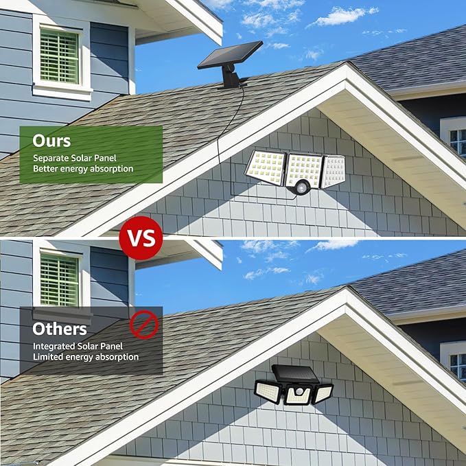 Solar Lights for Outside, WL5000 Motion Activated Security Lights, Separate Solar Panel, 3 Adjustable Head 270° Wide Lighting Angle, IP65 Waterproof Wall Lamp for Porch Yard Garage, 2 Packs
