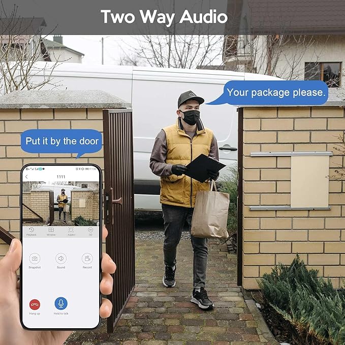 - Remote Live View & Two Way Audio - You can check what's going on in your home and office via your phone App or PC software when not at home. With a built-in microphone and speaker, you can see, hear, and speak with your kid, pet, and visitor directly