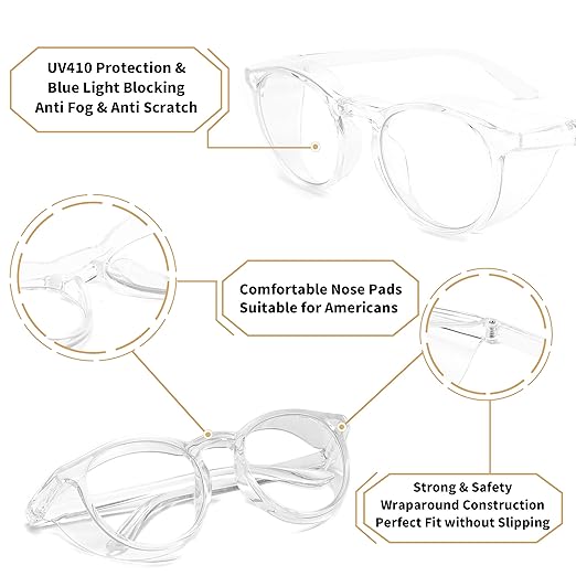 Alsenor Safety Glasses Anti Fog Goggles Protective Eyewear Blue Light Blocking Anti Dust UV Protection Glasses For Men Women (Round-Transparent)