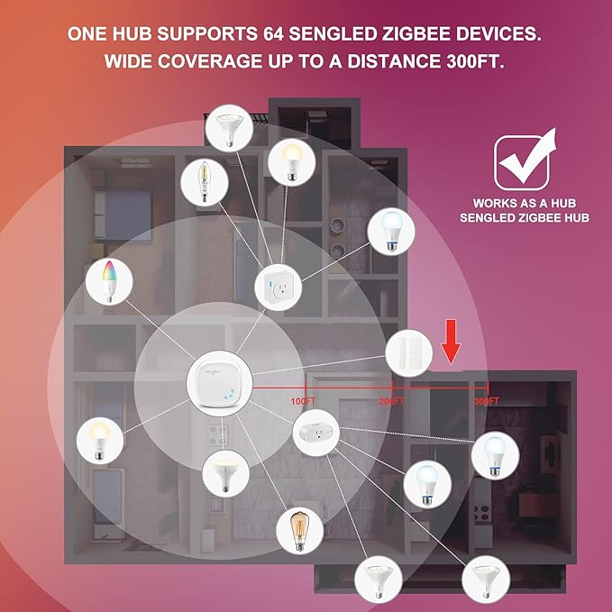 - 【Smart Home Ecological Chain】 Sengled Zigbee hub supports up to 64 Sengled smart light bulbs and accessories online at the same time (even outdoor). Zigbee Smart home ecological chains are more stable and safer than using a wifi system. Long-distance Signal Transmission and Worry-free that the Zigbee Smart Bulb signal quality is affected by the wall. Support 3-years free warranty, please contact us in time when you encounter product problems.