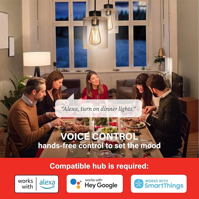 - 【Smart Voice & App Control】: Pair the Zigbee smart vintage filament bulb with a compatible hub to activate complete voice control with Alexa and Google Assistant devices. Send a voice command to turn on/off or dim/brighten the Zigbee smart bulb.【DON'T USE A WALL DIMMER TO DIM OUR SMART VINTAGE FILAMENT BULB】
