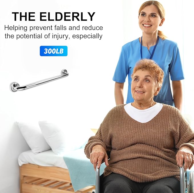 - The Grab Bar Rail length is 16 inch and measures 1 inch in diameter; made of 304 stainless steel structure, which can ensure the durability; the chromium coating on the surface can resist corrosion, providing you with strong support and easy to clean