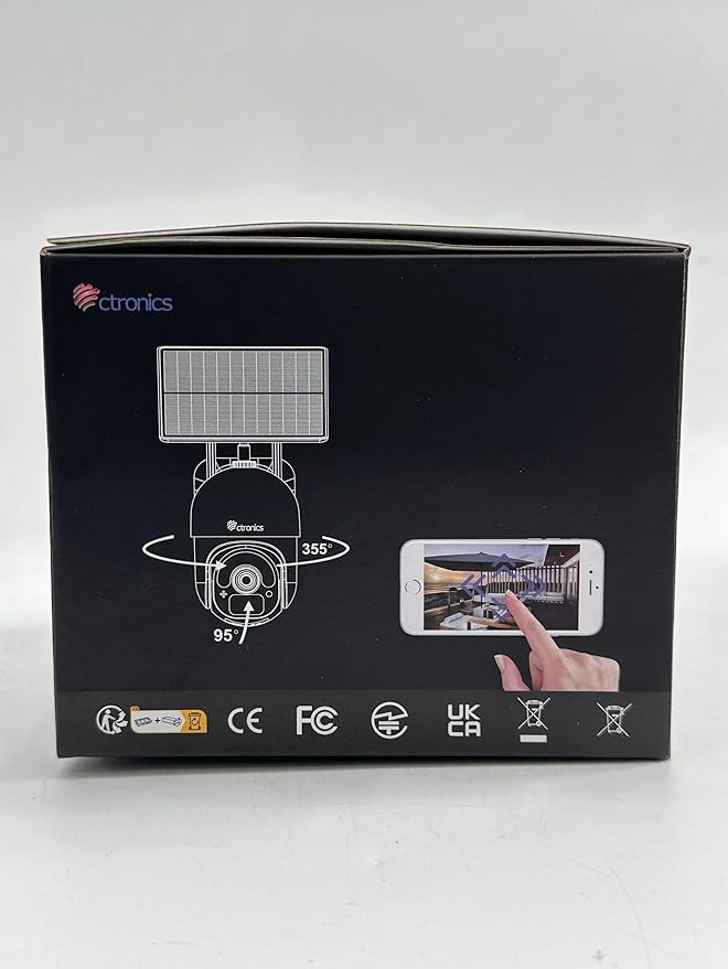 - Solar Powered & 7800mAh battery powered - Built-in 7800mAh rechargeable batteries and solar panel provide non-stop power supply without the hassle of taking down the camera from the roof to get charged. The well-designed waterproof solar panel can continually self-charge effortlessly in 365 days, and the battery would make it work even on an overcast day. Ctronics home security camera operates on 2.4Ghz WiFi, which has better penetration and broader WiFi coverage, not support 5GHz WiFi