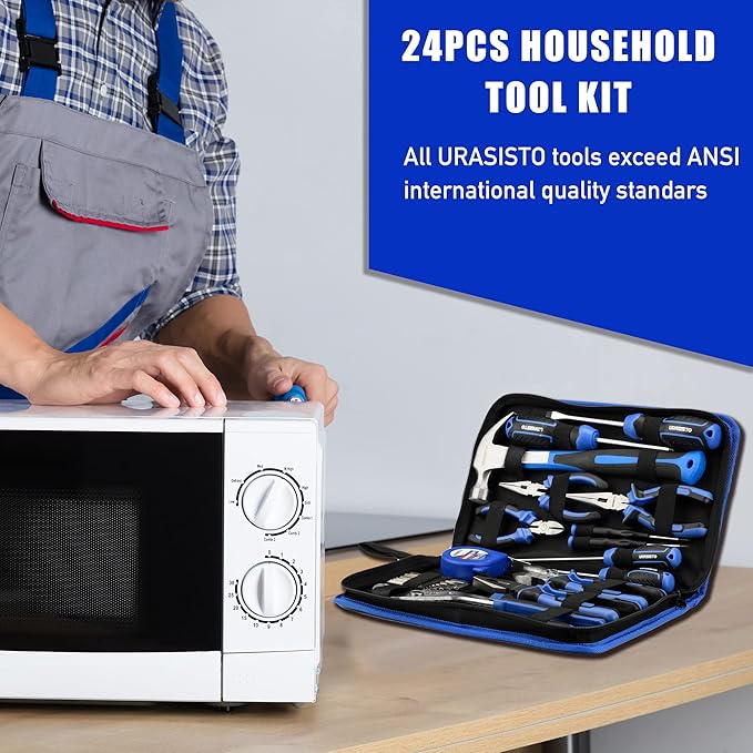 24-Piece Household Tool Kit for Men Repair Hand Tool Set Bag with Hammer, Screwdriver,Pliers, Wrench set with Storage Bag