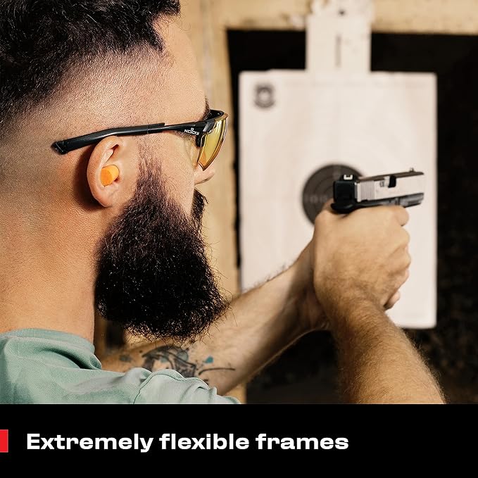 - VERSATILE AND ANSI Z87 CERTIFIED - These safety glasses yellow lens is perfect for the shooting range. You can use them as hunting eye protection, wear them in front of screens, at the construction site, or while working under UV lights.