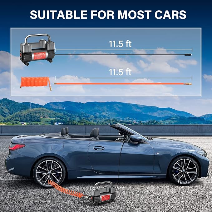 - STABILITY TECHNOLOG: Rubber feet to make sure the 12V air pump stays where it is placed and does not move around during operation ,make the air compressor more powerful,effectively reduce the vibration and noise.