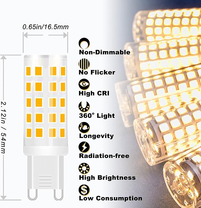 - 2700K Warm White: Soft warm white color, create relax comfortable lighting for your home ,not 4000k natural or 6000k cool white, if you need other color g9 we also have