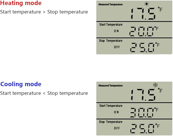 - 【Temperature Control Function】Set the temperature controller outlet start and stop temperature to control the heating or cooling equipment, Timer thermostat support 15A/120V 1800W load, suitable for most home appliance.