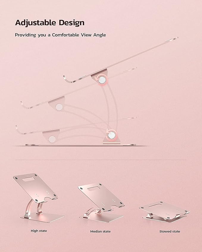Nulaxy Fully Adjustable Laptop Stand for Desk, Dual Foldable Aluminum Computer Riser with Heat-Vent, Ergonomic Notebook Holder Portable Office Accessories Compatible with All 10-17" Laptops, Pink