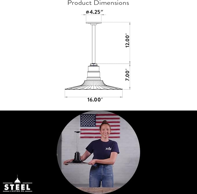 - INDUSTRIAL CHARM MEETS FUNCTIONALITY – Illuminate large spaces like warehouses, barns, or workshops with The Eagle Rock light's 16-inch dome and vintage-inspired wavy texture, blending timeless design with maximum brightness.