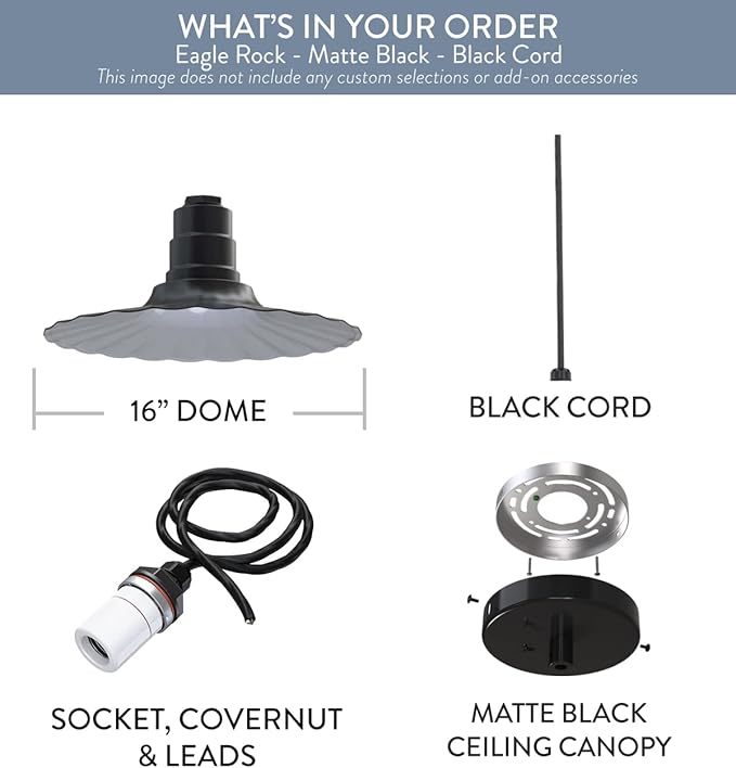 - INDUSTRIAL CHARM MEETS FUNCTIONALITY – Illuminate large spaces like warehouses, barns, or workshops with The Eagle Rock light's 16-inch dome and vintage-inspired wavy texture, blending timeless design with maximum brightness.