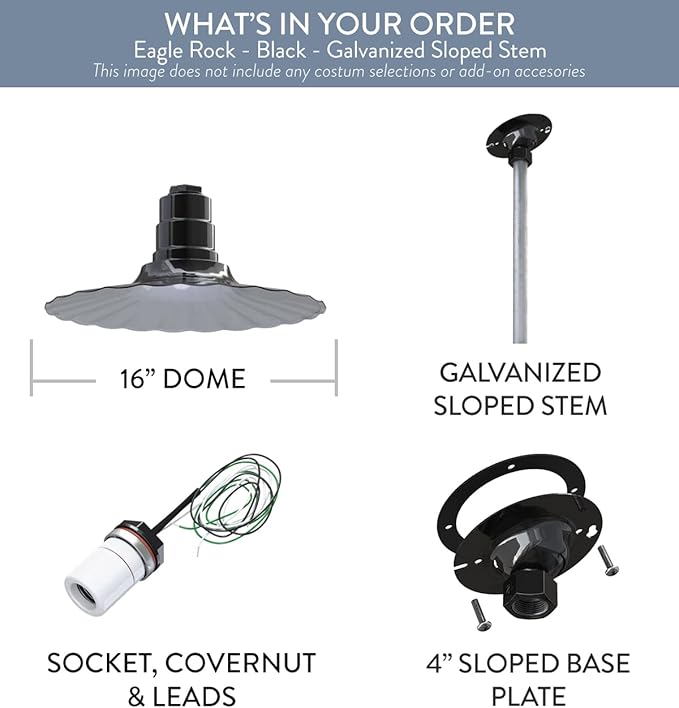 - INDUSTRIAL CHARM MEETS FUNCTIONALITY – Illuminate large spaces like warehouses, barns, or workshops with The Eagle Rock light's 16-inch dome and vintage-inspired wavy texture, blending timeless design with maximum brightness.