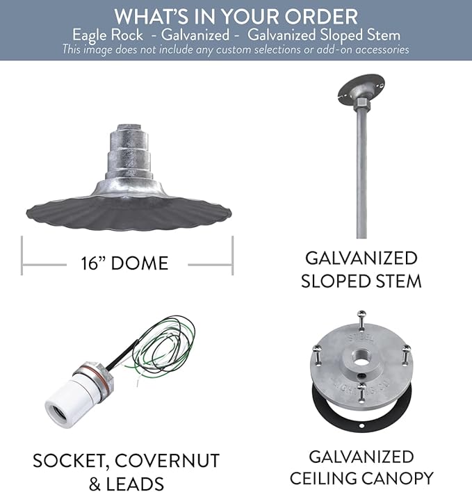 - INDUSTRIAL CHARM MEETS FUNCTIONALITY – Illuminate large spaces like warehouses, barns, or workshops with The Eagle Rock light's 16-inch dome and vintage-inspired wavy texture, blending timeless design with maximum brightness.