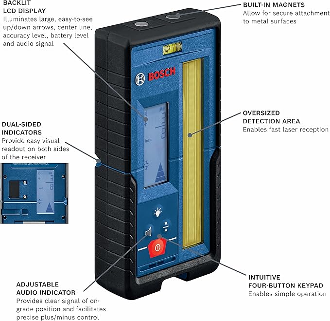 BOSCH LR20 1000 ft Red and Green-Beam Rotary Laser Receiver, Includes Mounting Bracket & 2 AA Batteries
