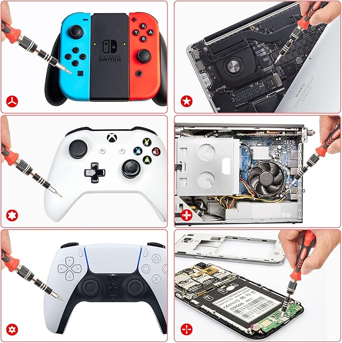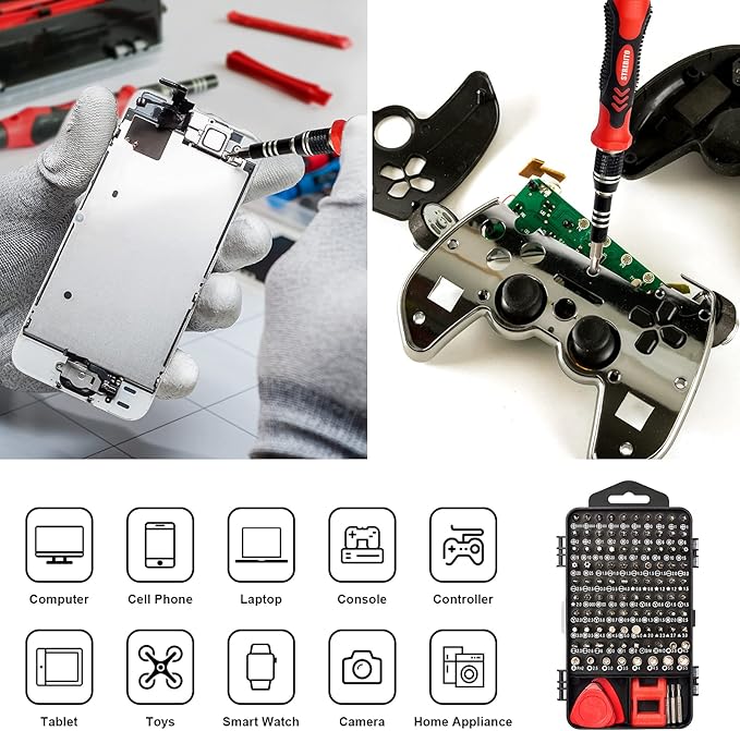 - 【Variety & Versatility】STREBITO 124 electronic screwdriver set includes 101 precision bits, complete with every driver head you'll need to repair any electronics, such as Apple & Android mobile phone, PC, laptop, iPhone, Mac, PlayStation 5/4/3, Xbox series game console & controller, tablet, iPad, RC toys, watch, eyeglass, etc. This is the do-everything toolkit every DIYer, fixer, IT geek, professional tech and hobbyist needs, also a decent gift for your family, friends, colleagues, etc