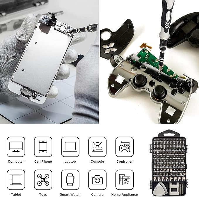 - 【Variety & Versatility】STREBITO 124 electronic screwdriver set includes 101 precision bits, complete with every driver head you'll need to repair any electronics, such as Apple & Android mobile phone, PC, laptop, iPhone, Mac, Nintendo, PlayStation 5/4/3, Xbox series game console & controller, tablet, iPad, RC toys, watch, eyeglass, etc. This is the do-everything toolkit every DIYer, fixer, IT geek, professional tech and hobbyist needs, also a decent gift for your family, friends, colleagues, etc