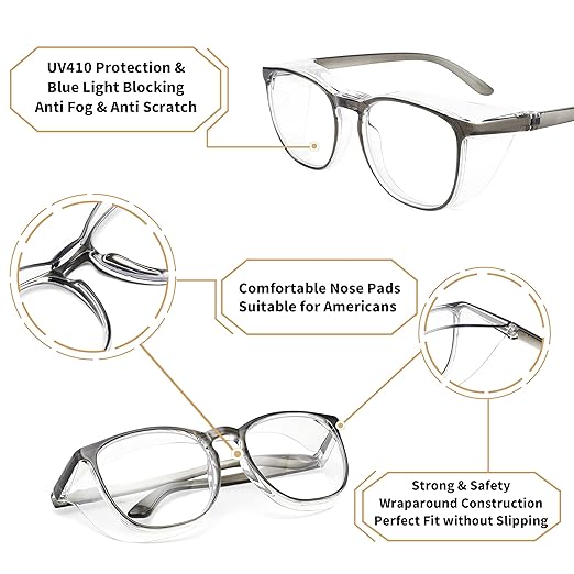Alsenor Safety Glasses Anti Fog Goggles Protective Eyewear Blue Light Blocking Anti Dust UV Protection Glasses For Men Women (New-Grey)