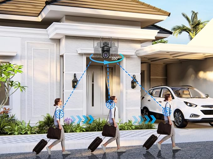 - 【3MP HD Video Quality】Adopts 3MP ultra clear all glass lens, which presents a much more clear image than 2MP cameras. As well as 4X Digital Zoom for closeup while viewing videos, you can see and grasp the finest key details in clarity.You can control the 350°horizontal and 90°vertical pan and tilt remotely via phone/tablet/PC which offers you no blind area vision.