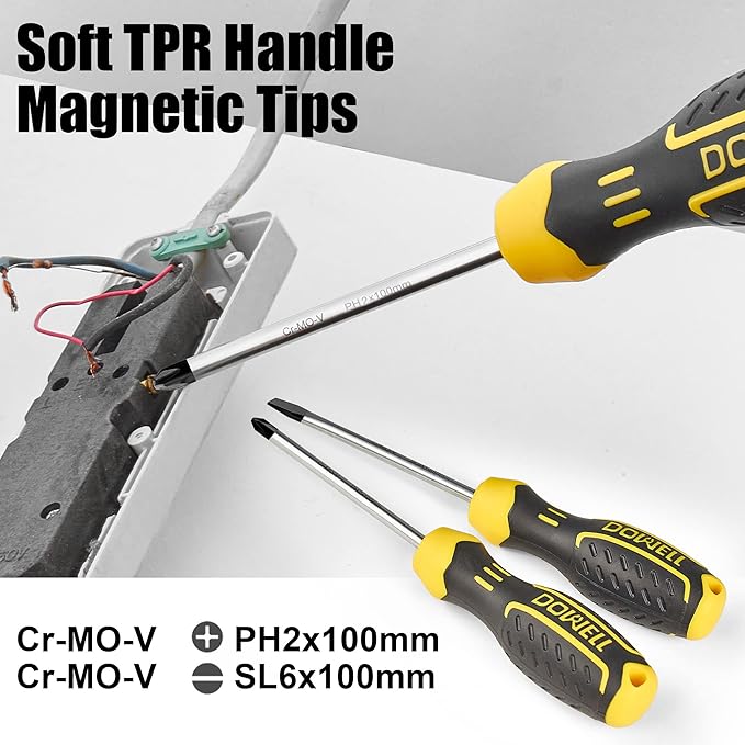 DOWELL 7-Piece Pliers Set - 10-Inch Groove Joint, 8-Inch Adjustable Wrench, Combination, 6-Inch Long Nose, Diagonal Cutting, Screwdrivers - Maintenance Tool Kit With Pouch