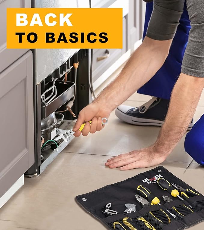 - PACKAGE INCLUDES: 10-inch groove joint pliers, 8-inch adjustable wrench, 8-inch linesman/combination pliers, 6-inch needle nose pliers, 6-inch diagonal side cutting pliers, 2PCS Screwdrivers and a storage pouch with hanging hole.