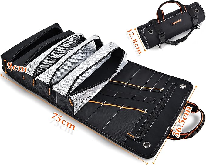 WELKINLAND Men's Tool Roll Organizer, Roll-Up Bag for Mechanics, Electricians & Motorcyclists