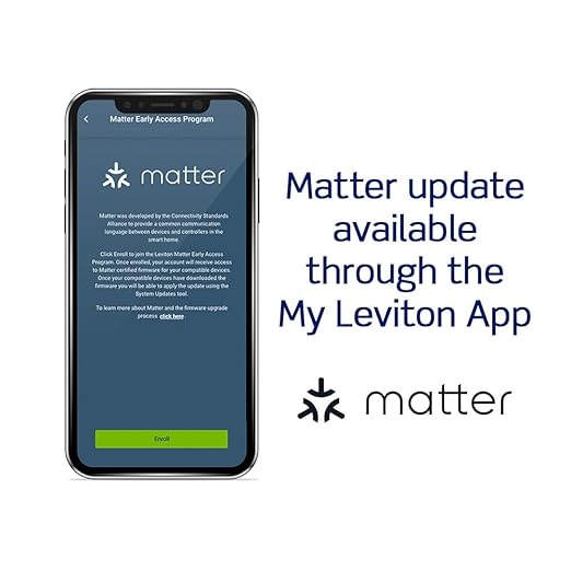 - MATTER: Firmware update available via the My Leviton app to enable Matter connectivity