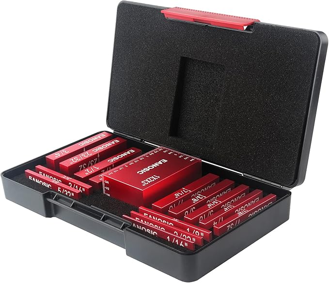 - Set up gauge blocks are all 3 inches long. Accurate saw gauge block set sizes: 1/16", 3/32", 1/8 ",5/32" ,3/16" ,7/32" ,1/4" ,5/16" ,3/8" ,7/16", 15/32", 1/2", 23/32", 3/4", 1x2x3"