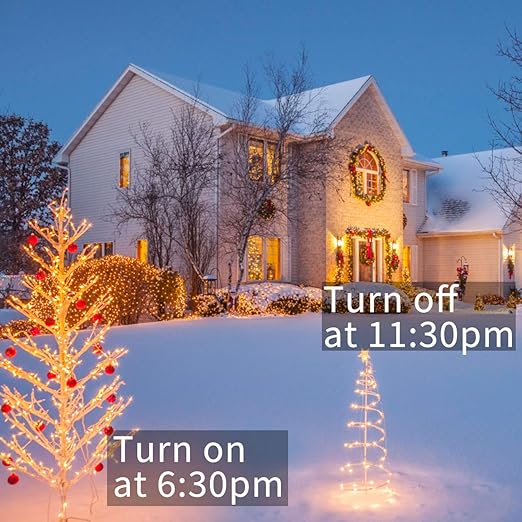 - [Schedule and Timer] You can schedule socket to turn on and off automatically with outdoor timer outlet waterproof. And added benefit of saving energy when the plugged-in appliances are not needed or are left on by accident. This smart plug supports setting dusk and sunset timers. It can be turned on or off based on astronomical timing