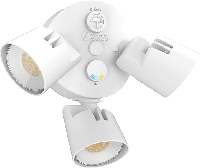 Lithonia Lighting HomeGuard 3-Light LED Outdoor Flood Lights, Outdoor LED Lights, Dusk to Dawn Sensor, Adjustable Lumens, Selectable Color, Round Heads, White (HGX LED 3RH ALO SWW2 120 PE WH M2)