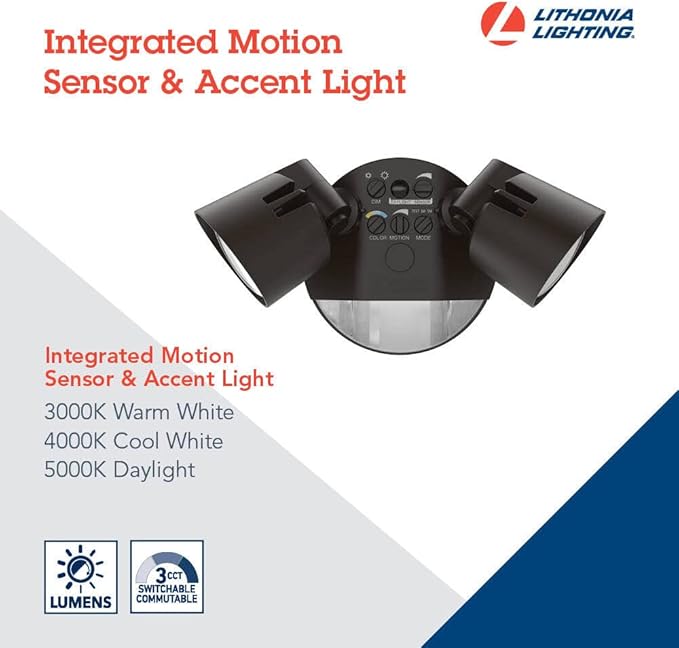 Lithonia Lighting HomeGuard 2-Light LED Outdoor Flood Lights, Motion Sensor Outdoor Lights with Dusk to Dawn, Adjustable Lumens and Color, Round Heads, Dark Bronze (HGX LED 2RH ALO SWW2 120 PIR DDB)
