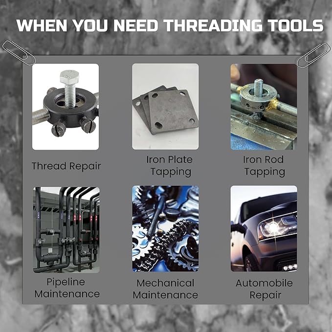 - RETHREADING SET -- Professional standard and metric tap die rethread tool kit for cutting or updating of internal and external threads on fasteners or fastener holes. The taps can also be used to remove broken screws