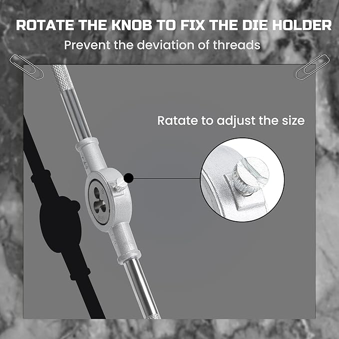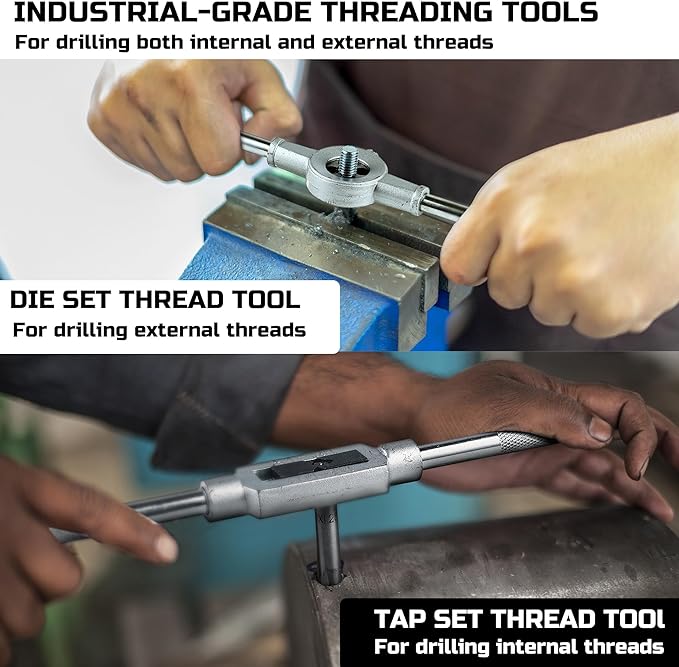 - ALL-IN-ONE SET -- Comes with thread gauge, tap handle, die handle, small tap chuck, and a carrying case for your convenience. Easy to assemble and operate