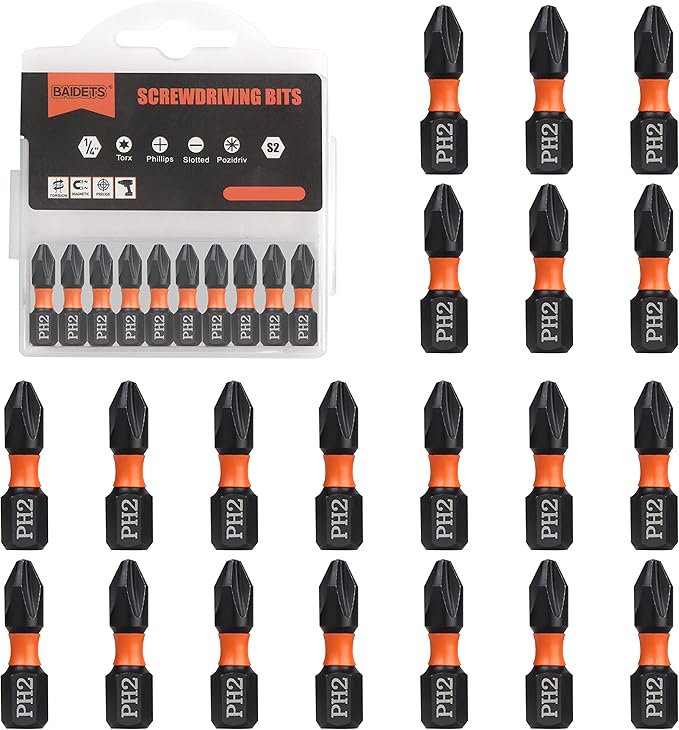 - 【Specification】The Tool Set Consists of 20Pcs BAIDETS Pro PH2 Phillips Screwdriver Bit Pack, 25mm Length, With Storage Box.
