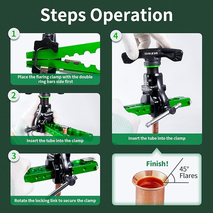 - Super Stars flaring tool adopted large feed screw handle for smooth turning with little effort when flaring. Producing 45 single flare