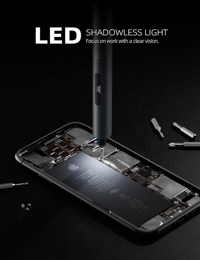 - 【Versatile Dual Mode: Manual and Electric】Enjoy flexibility with both manual and electric modes. Manual mode delivers up to 3 N.m torque, while electric mode provides 0.2 N.m for delicate tasks. Ideal for repairing electronics like smartphones, laptops, cameras, and watches, ensuring efficiency and screw protection.