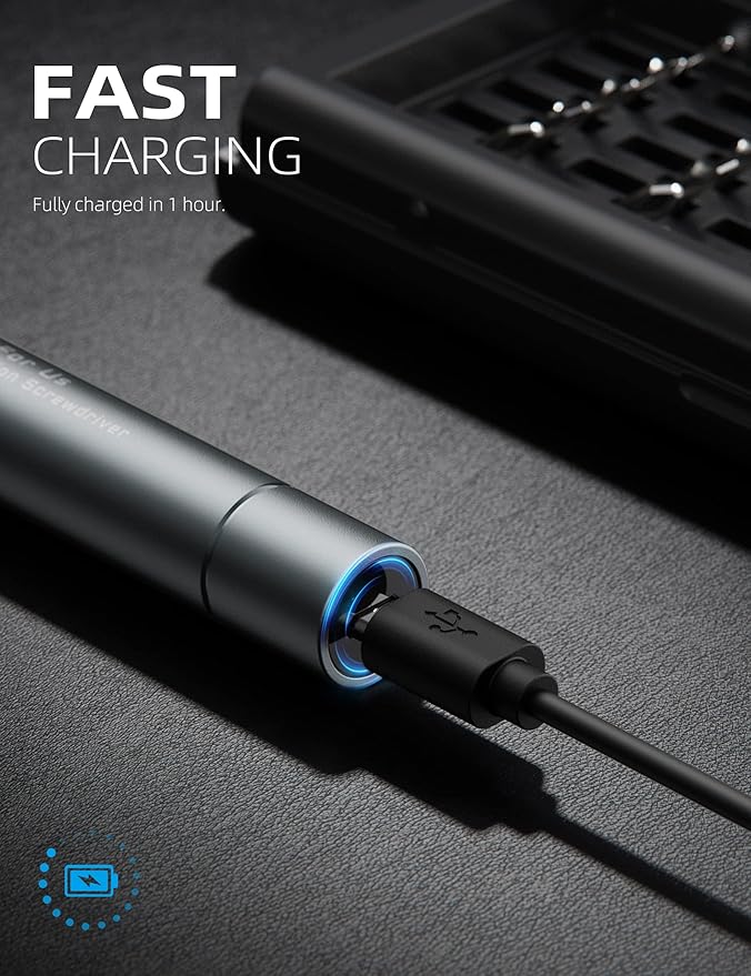 - 【Efficient Rechargeable Battery】The durable rechargeable battery handles up to 300 screws per charge, with a full charge achieved in about 1 hour via the USB Type-C port. The powerful motor, with a maximum speed of 200 RPM, makes screwing and unscrewing tasks quick and efficient.
