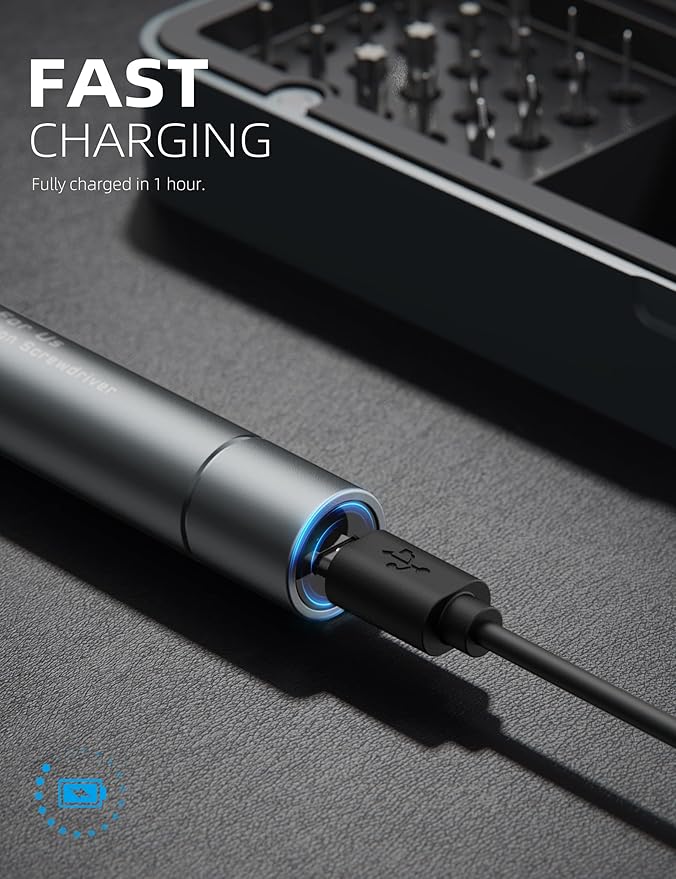 - 【Long-lasting Rechargeable Battery】Equipped with a rechargeable battery that handles up to 300 screws per charge. The USB Type-C port allows for a full charge in about 1 hour. With a powerful motor delivering a maximum speed of 200 RPM, screwing and unscrewing tasks are quick and efficient.