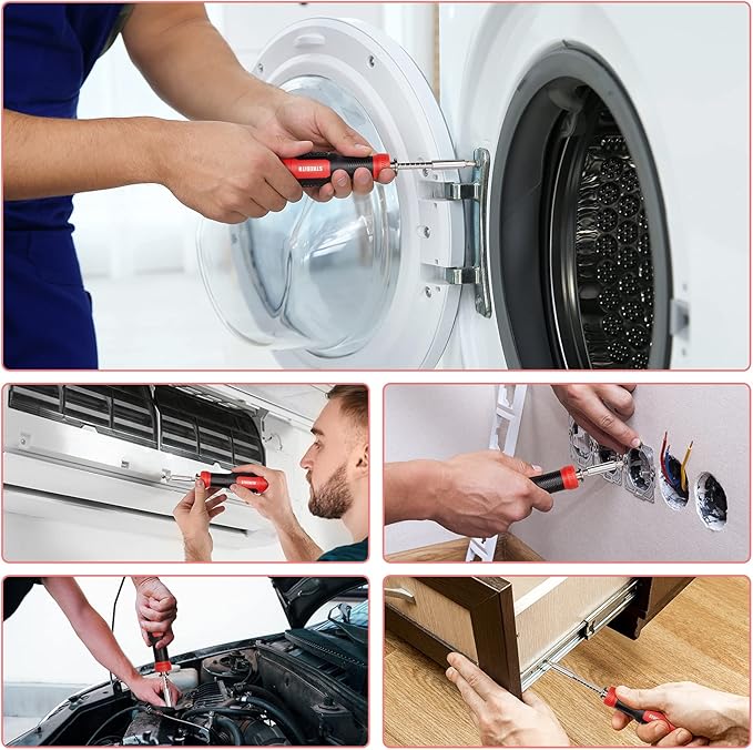 - 【Adaptability and Portability】The 1/4 nut driver has an integrated bit holder inside handle, you can select 12 bits from the screwdriver bit set (Schrader Valve Insertion, Slotted, Star, Square, Clutch, Torq Set, Hex, etc) and make a personality multibit screwdriver. You'll always have the right tool in hand and no need to carry multiple tools on any jobsite. In addition, 4mm and 1/4" bit kits folders are attached to the portable oxford bag with velcro, offering easier storage and carrying