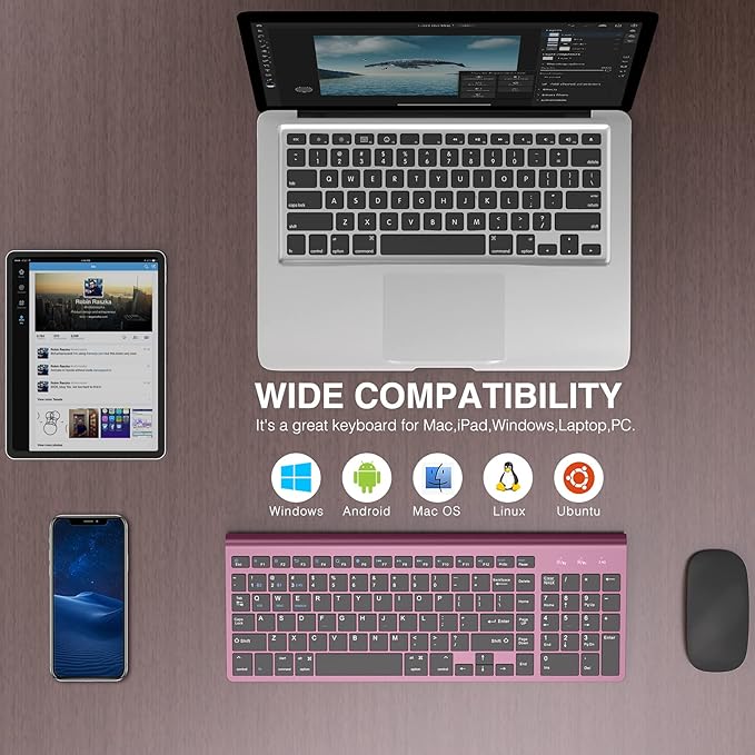 - Multi-Device Wireless keyboard: Support two connection methods: 2.4G and Bluetooth(BT3.0+BT5.0) It has the function of connecting devices with Android, Windows, and Mac systems at the same time. It could keep stablely connecting on different devices and easy to switch.