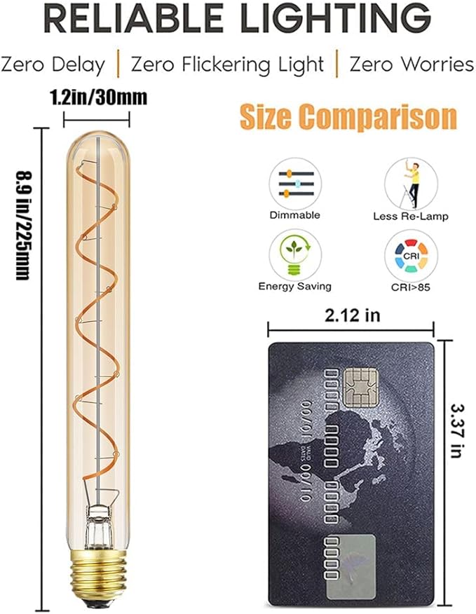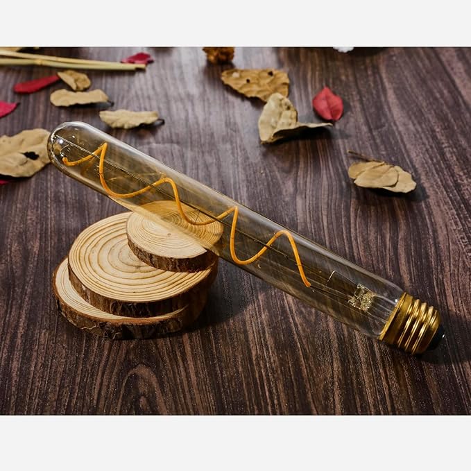 - VINTAGE STYLE - This vintage filament bulb preserves the design of traditional Edison light bulbs but with LED, amber warm (2200K) color energy saving technology,e26 led long tubular edison bulb T10(T30) with spiral led filament, Amber glass, create to classic atmosphere, fantastic for decorative lighting, standard (Medium) base E26 fit all home lighting fixture.