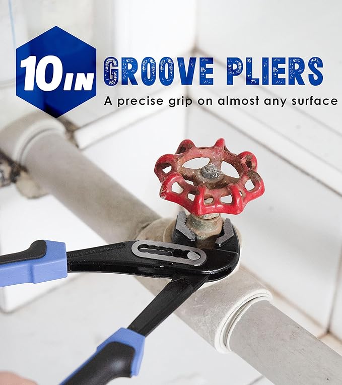 - ๐ PAKAGE: The pliers set comes with a roll-up storage pouch, 8-inch long nose, 10-inch groove Joint, 8-inch locking pliers and 8-inch adjustable wrench.