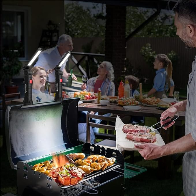 - 【Upgrade Super Strong Magnet Base & Hook】The magnetic bottom has a strong hold and the magnetic light could be stuck to any metal steel, they will hold in place when working in tight spaces. the hook is very convenient for you to put this magnetic work light in any place and make your hand free to finish the job.