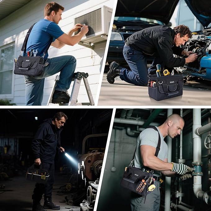 - ๐ [WIDE APPLICATION] General purpose design to allow you to get the most out of this tool organizer. No matter you are a homeowner or a professional carrying electrical, mechanical, drywall, HVAC, construction, or locksmith tools, you will find a place for this versatile tool bag