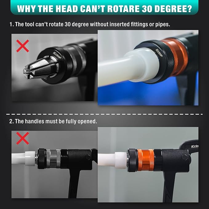 - The expansion heads will rotate automatically every circle of the handles fully open and close, which can ensure no deep grooves on the interior of the pipe which can lead to leak paths.