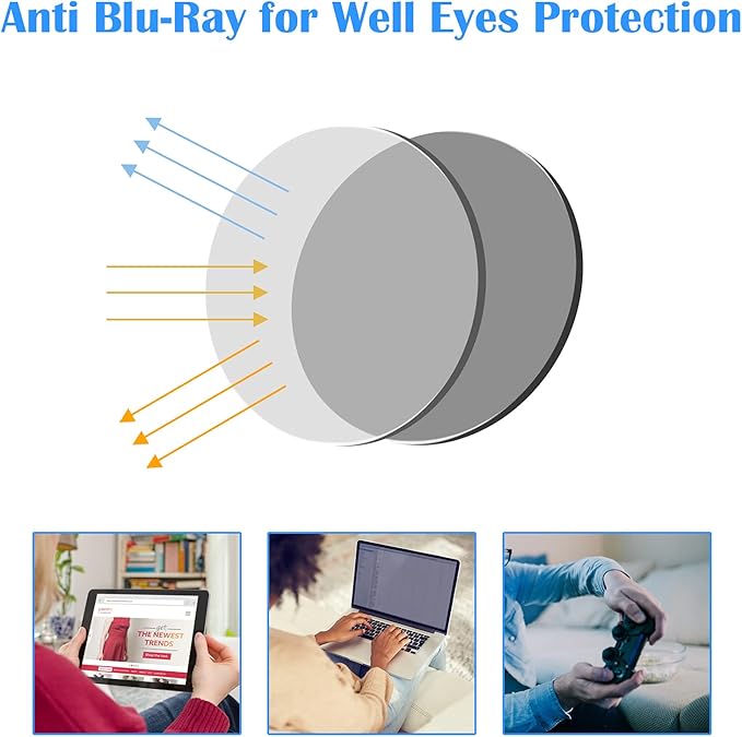 - Anti blue light goggles: These safety glasses anti fog anti scratch specially designed to fit your eyes comfortably, anti-blue light glasses, and UV protection glasses. They are suitable for Playing Computer, Watching TV, Playing on cell phones, Working, and Other Occasion.