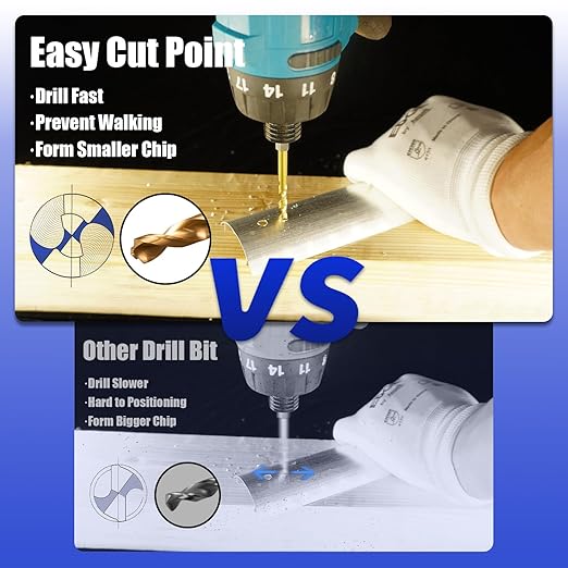 - Easy Cut Point - The 135° easy-cut split point ensures a precision start and prevents walking on working surface. A specially designed parabolic flute forms smaller chips and clears debris easily. This design keeps the bit cooler which prolongs drill bit life.