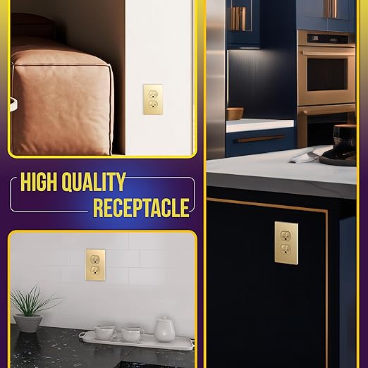 - Gold color; includes installation screws; 15A 125VAC, 5-15R; flammability UL94, V2 Rating; UL Listed; 1-year warranty