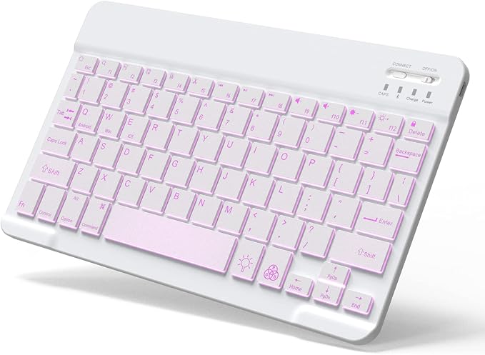 Backlit Bluetooth Keyboard Small Portable Wireless Keyboard Rechargeable Illuminated for Android Samsung Tablet Cell Phone Smartphone iPad A16 11th 10th Generation iPad Pro Air Mini iPhone (White)