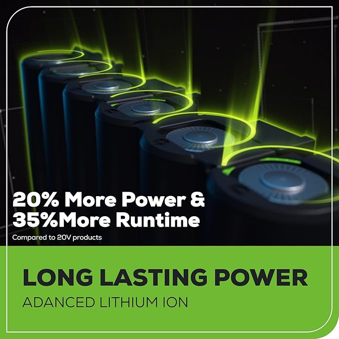 - 【Greenworks 24V Lithium-Ion battery】provides 20% more power and 35% more run-time versus 20V competition, and delivers fade-free power with no memory loss after charging.